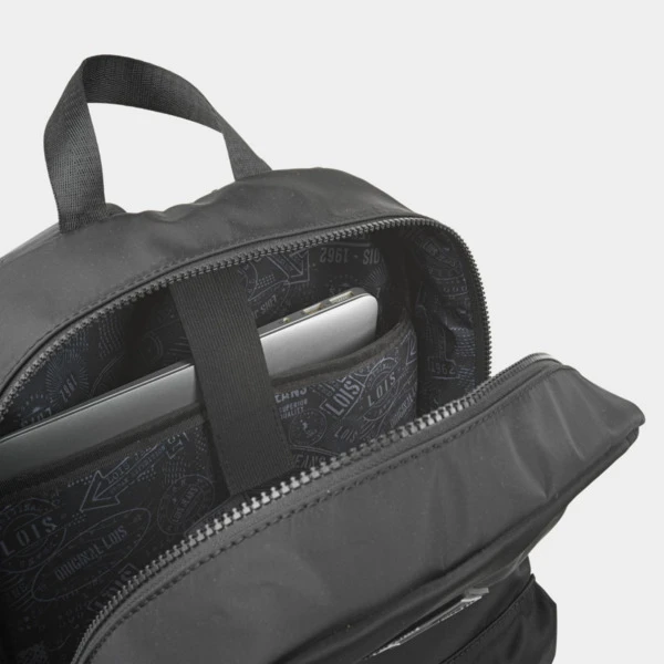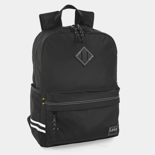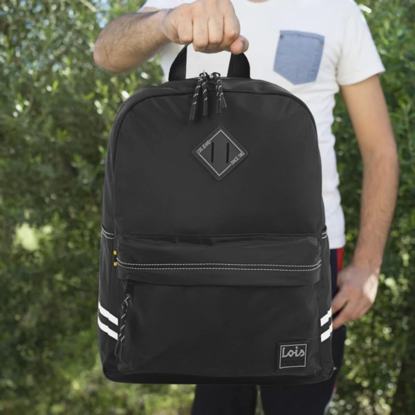 Lois presenta la colección HOWSON. El hombre moderno tiene nuevas necesidades, Lois las conoce y ofrece en esta su última colección de bolsos y complementos para hombre. La ligereza de los materiales, los acabados y costuras y la distribución de los compartimentos han sido cuidados hasta el más mínimo detalle, HOWSON de LOIS es tu elección acertada. Mochila Escolar Adolescente – Mochilas Negras – Mochila Escolar Negra de la marca LOIS. Diseño original, único y exclusivo de la firma. Medidas: 31x41x12 cm. Peso: 0,6 kg. Material: Poliéster.