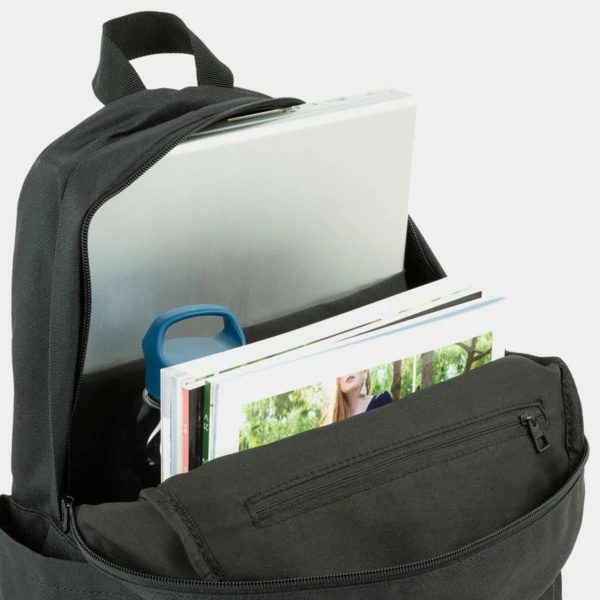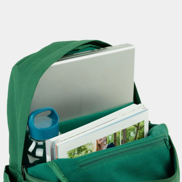 Exterior: 1 bolsillo delantero con cierre cremallera, 2 bolsillos laterales, dos asas regulables y un asa superior de mano..