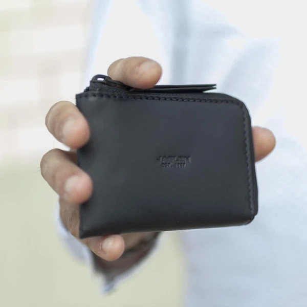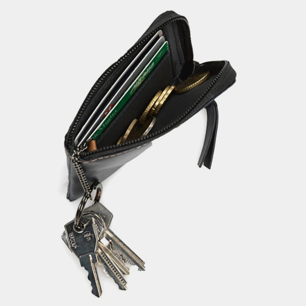 Monedero con obertura en forma de «L» para una mayor accesibilidad. Tiene un llavero interior y un departamento interior con capacidad para 3 tarjetas.