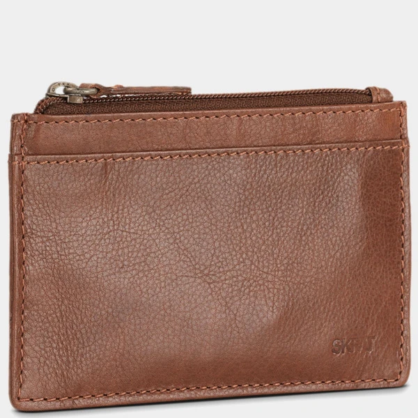 Tiene un llavero interior y con 4 ranuras en la parte trasera para tarjetas y una en la parte delantera. Destaca el forro a tono.