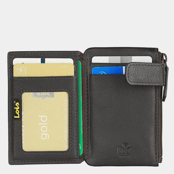 Monedero / tarjetero con llavero interior y capacidad para 5 tarjetas. Solapa con cierre a presión.