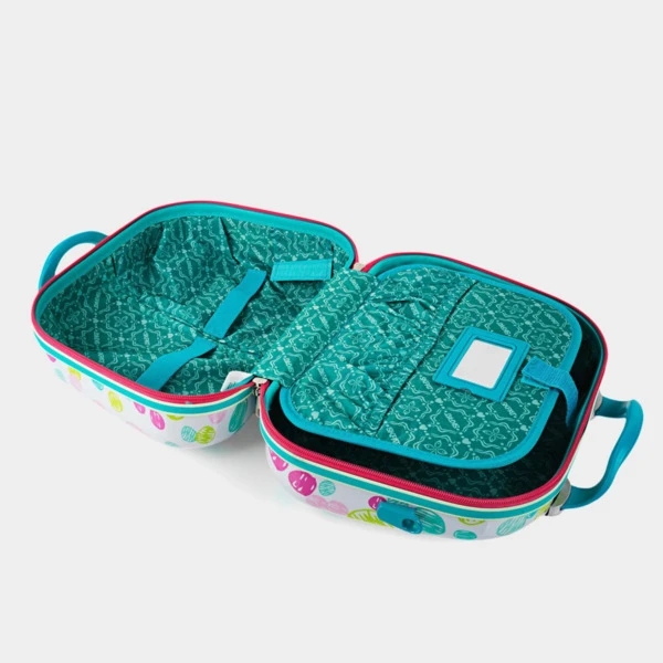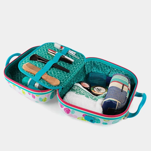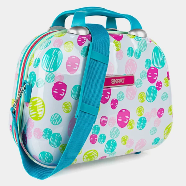 Neceser de la firma SKPAT. Cuenta con un cierre cremallera con doble cursor personalizado para facilitar su apertura.El diseño incorpora doble asa y una correa elástica trasera para la sujeción en el trolley de la maleta. Separador interior con espejo.