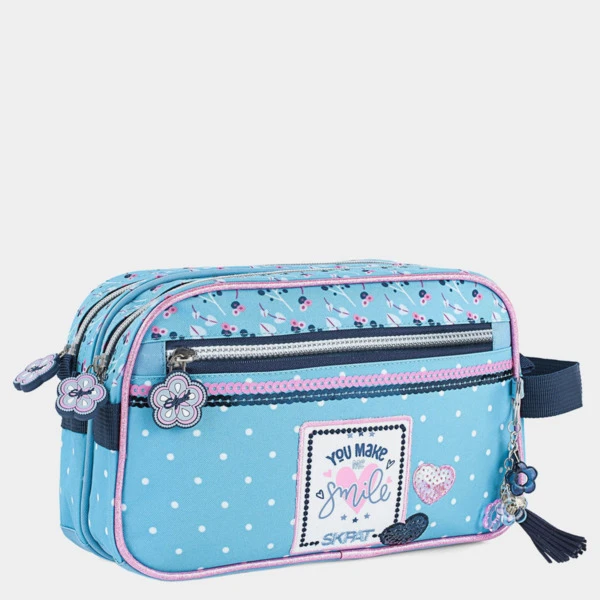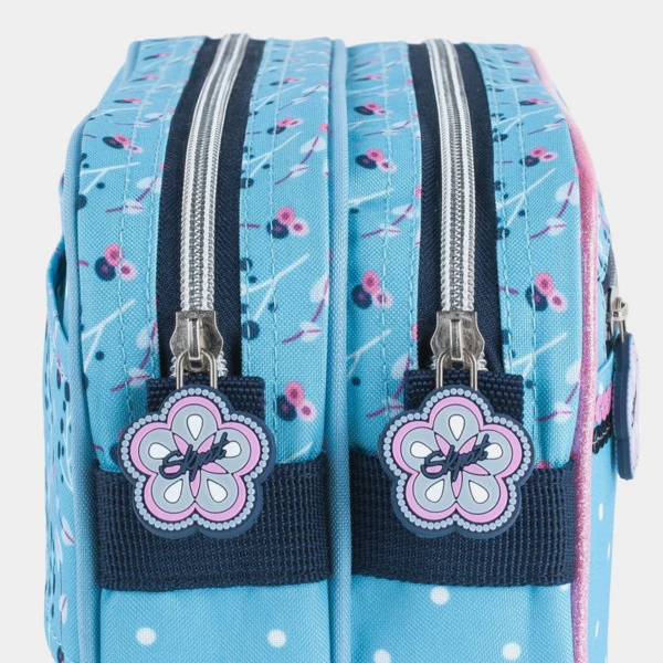 SKPAT es un referente en el diseño joven y atrevido, combina estampados con brillos purpurina y motivos florales consiguiendo como resultado esta preciosa colección de artículos para el cole.