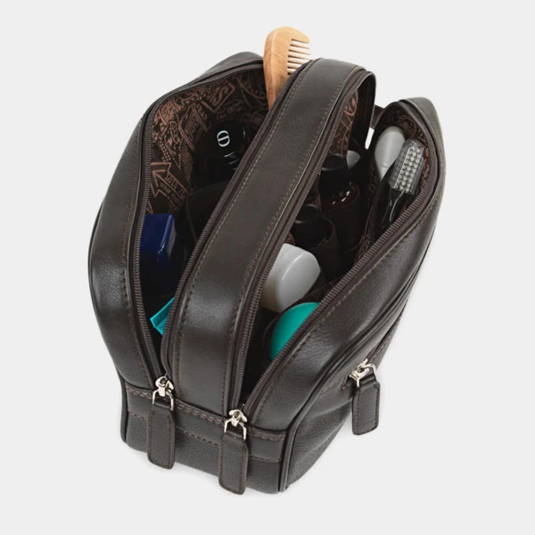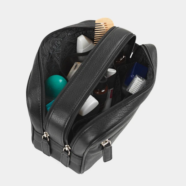Neceser de viaje de piel genuina con 2 departamentos, organizador interior de la marca LOIS. Diseño único y exclusivo de la firma. Alta resistencia y durabilidad, este producto es el resultado de la evolución de la marca Lois en su continua búsqueda de la mejor calidad al mejor precio. El interior está forrado con Nylon personalizado acorde al diseño de la marca. Para la organización, cuenta con bolsillos y cremalleras para asegurar la sujeción y el orden. Bolsa de aseo para hombre. Materiales y costuras de alta calidad. Multifuncional. Resistente al desgaste. Medidas: 25x14x10 cm. Peso: 0,4 kg. Material: Piel.