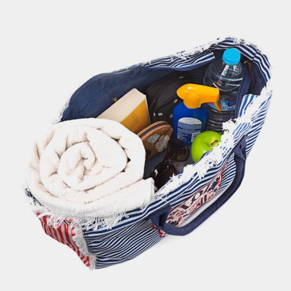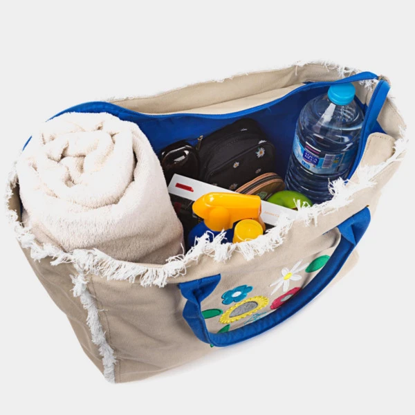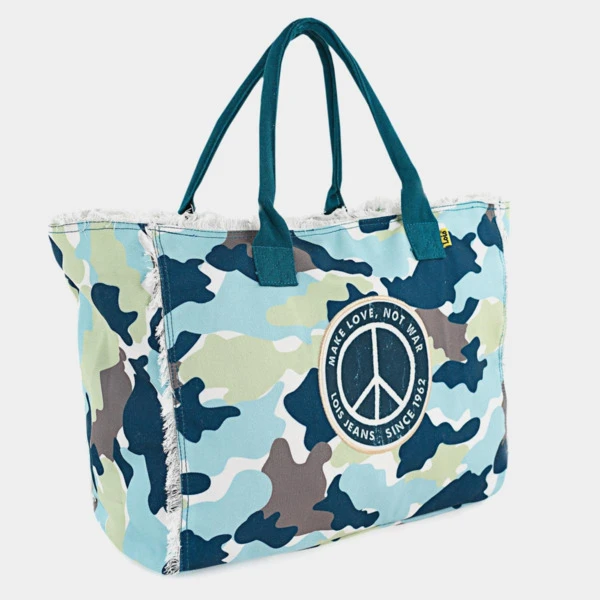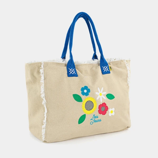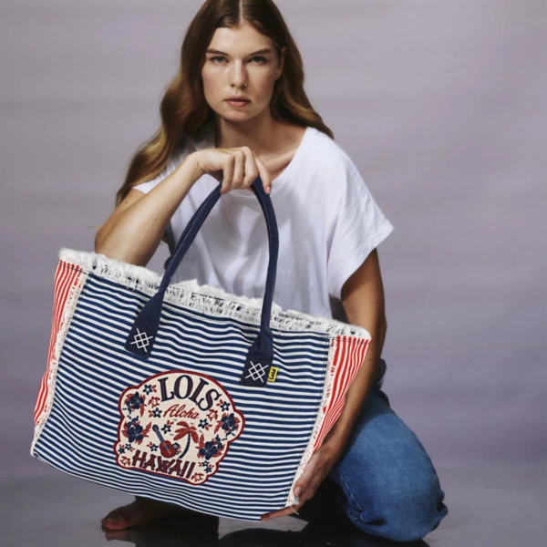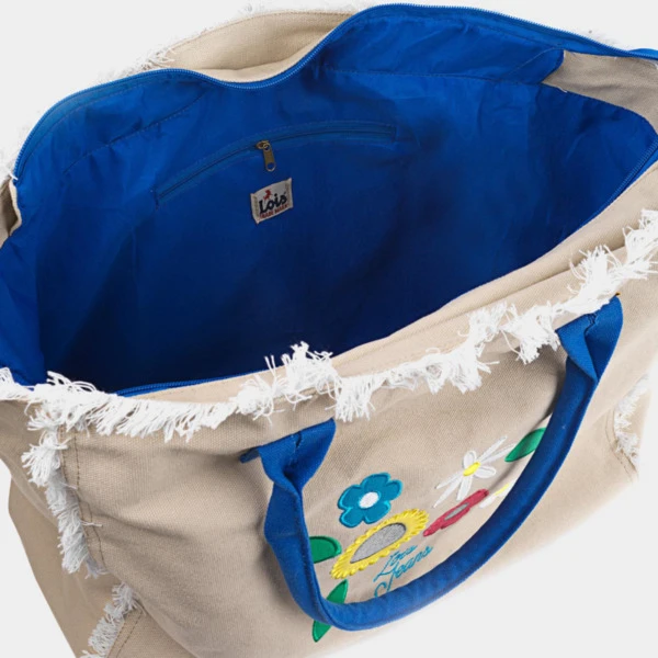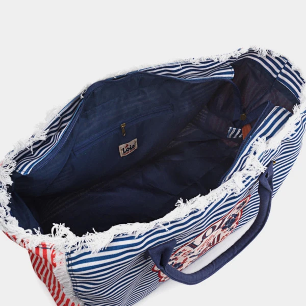 Bolso Playera de mujer de la marca Lois. Diseño original único y exclusivo de la firma. Para la fabricación de nuestras resistentes bolsas de playa utilizamos 100% algodón en el interior y 100% lona para el exterior. Se pueden cerrar con una cremallera y son ideales para la playa, las compras, los festivales, etc. Pertenecen a los formatos grandes y ofrecen una increíble cantidad de espacio de almacenamiento. También tienen un compartimento interior con cremallera. Pertenecen a los formatos grandes y ofrecen una increíble cantidad de espacio de almacenamiento. También tienen un compartimento interior con cremallera. Medidas: 44x34x18 cm. Peso: 0,44 kg. Material: Poliéster-Algodón.