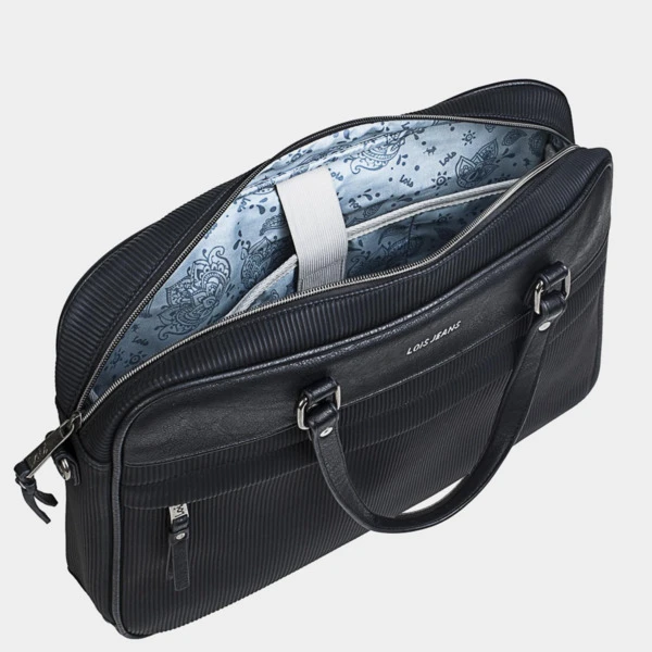 Portadocumentados de 15′ con bandolera adicional ajustable.Con cierre cremallera para una mayor seguridad. Presenta un bolsillo auxiliar en la parte frontal. En la parte trasera incluye una banda para poder ser llevado en el trolley de la maleta. El interior contiene una bolsillo con cremallera y un compartimento interior acolchado para portátil con cierre velcro. El lining, está personalizado acorde al diseño exterior.